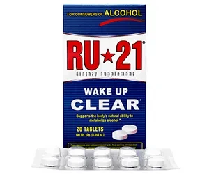 RU-21は二日酔い防止用サプリメントで、ビタミンCやビタミンB2、B6、コハク酸、フマル酸などが含有しています。アルコール代謝能力をサポートし、飲酒中の動悸や吐き気、頭痛、二日酔い症状などを緩和できます。
