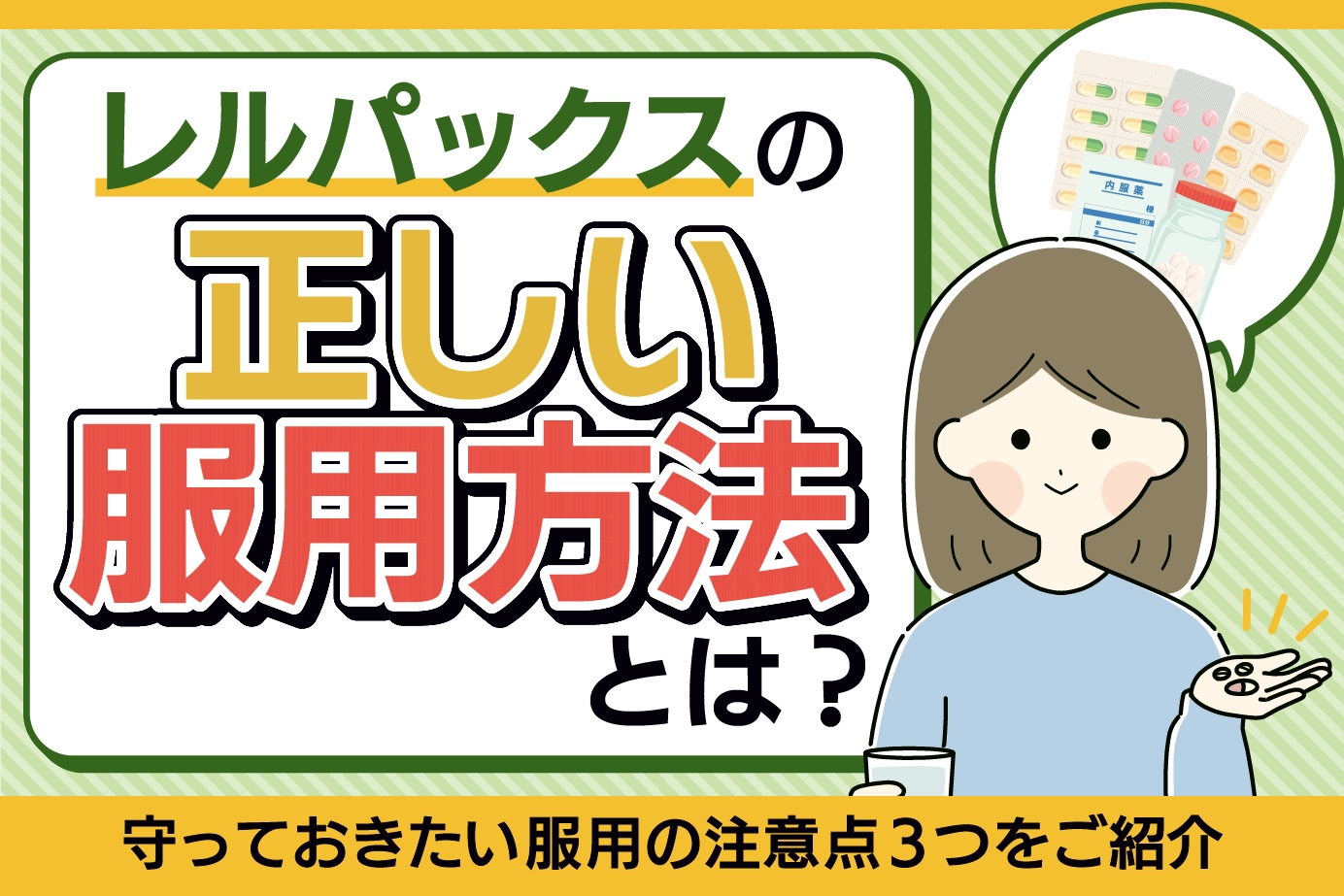 この記事では、レルパックスの正しい服用方法や服用期間中に気をつけるべきポイントをご説明します。