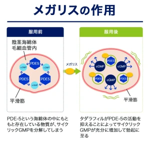 メガリスの有効成分タダラフィルは、PDE5阻害薬に属します。