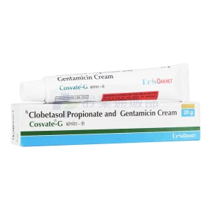コスベートGクリーム1本あたりクロベタゾールプロピオン酸エステル0.05%/ゲンタマイシン0.1%を含有しています。