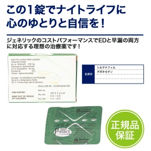 ED治療および早漏防止の両方に効果を持ちながら、ジェネリック医薬品として手頃な価格で入手できるという点は大きな魅力です。